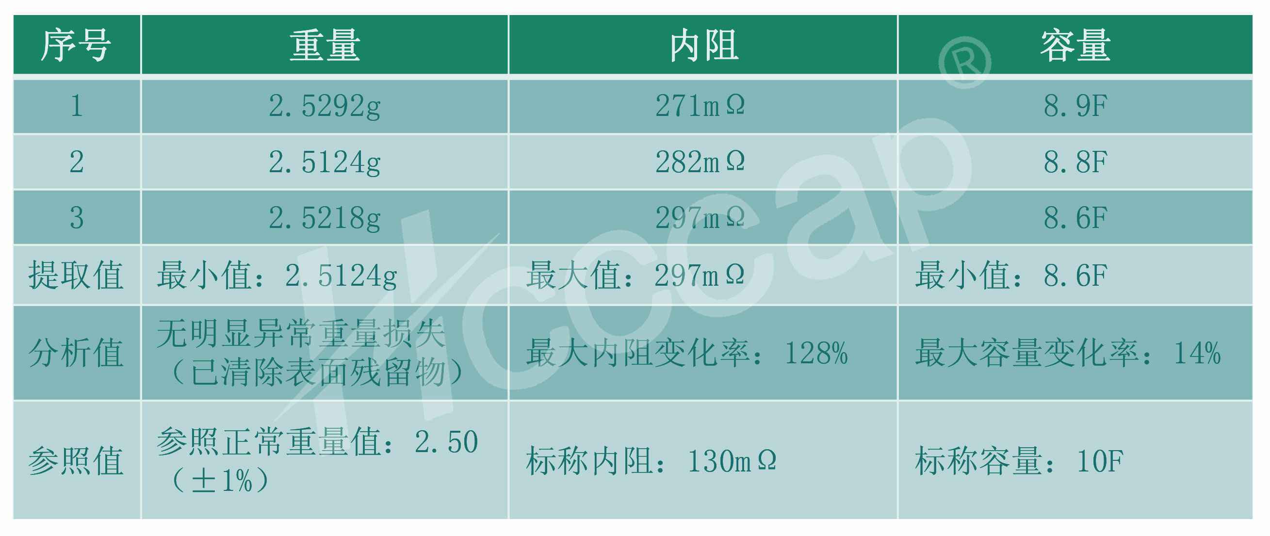 2.无论正常超级电容,还是模拟漏液电容,持续高温高湿(70℃ 95%RH)与常温常湿交变循环短时不会导致电容本身特性或者关联 PCB出现异常;