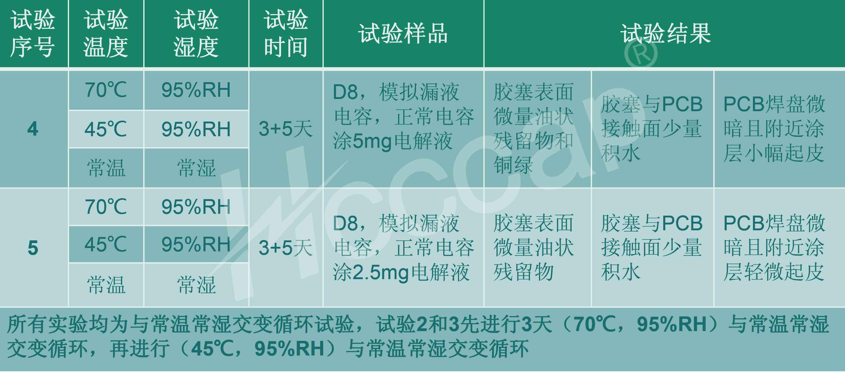 即使存在一定量的泄漏或渗漏量,在一定的引脚间距下,都可以有效阻止PCB腐蚀反应的进行。