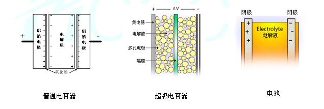 超级电容器(法拉电容、黄金电容)是利用电子导体活性炭与离子导体有机或无机电解液之间形成感应双电荷层原理制成的电容器。超级电容器电荷距离远比传统电容器介质材料所能实现的距离更小,活性炭电极表面积成数量级的增大,使得超级电容器较传统电容器而言有超级大的静电容量,这也是其“超级”所在。